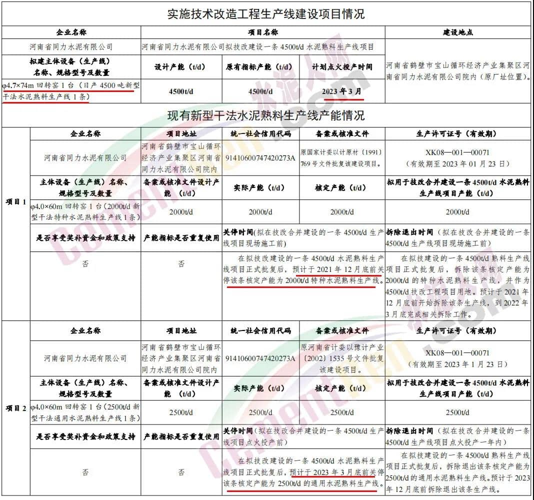 2021年3月9日、4月13日,鶴壁市工業(yè)和信息化局分別向我廳報(bào)送了《鶴壁市工業(yè)和信息化局關(guān)于河南省同力水泥有限公司4500t/d新型干法熟料生產(chǎn)線技術(shù)改造工程請(qǐng)示》(鶴工信文〔2021〕6號(hào))和《鶴壁市工業(yè)和信息化局關(guān)于河南省同力水泥有限公司日產(chǎn)4500噸新型干法水泥熟料生產(chǎn)線技術(shù)改造工程公示公告的報(bào)告》(鶴工信函〔2021〕1號(hào))文件。