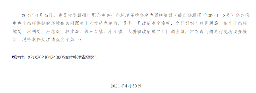 2021年4月30日在信豐縣人民政府網(wǎng)站等媒體公開(kāi)。