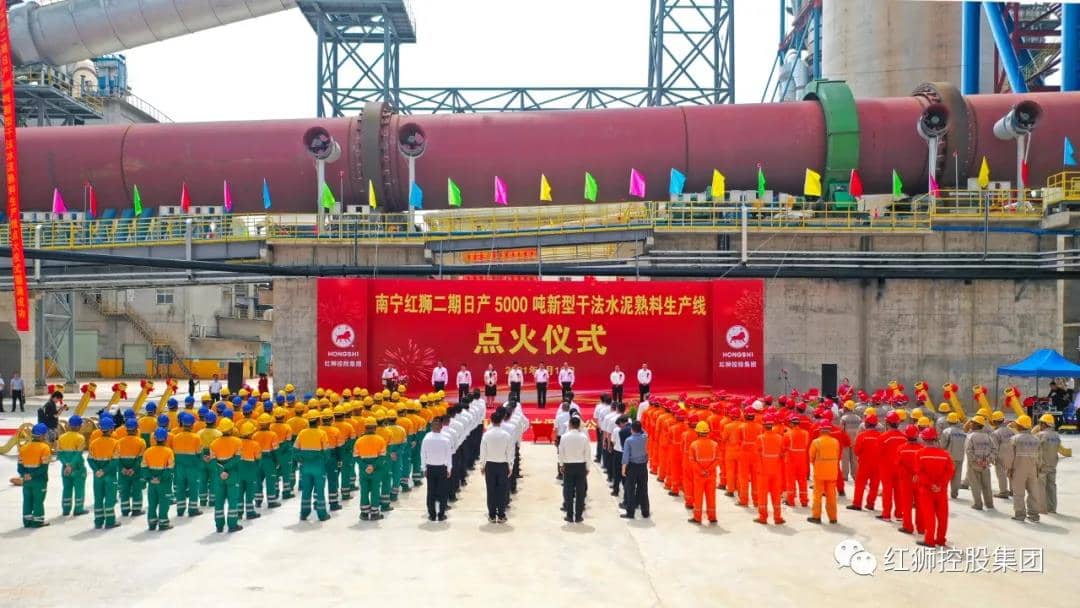 盛夏武鳴,欣欣向榮。5月18日上午10時38分,紅獅集團南寧紅獅二期日產(chǎn)5000噸新型干法水泥熟料生產(chǎn)線順利點火投產(chǎn),項目總投資約15億元、年產(chǎn)高標號水泥200萬噸。