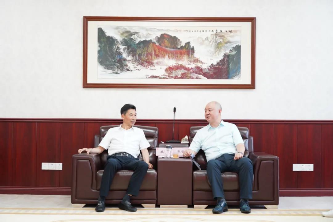 媧石集團(tuán)董事長(zhǎng)魏華山(左一)與港航實(shí)業(yè)執(zhí)行董事張智勇(右一)交談