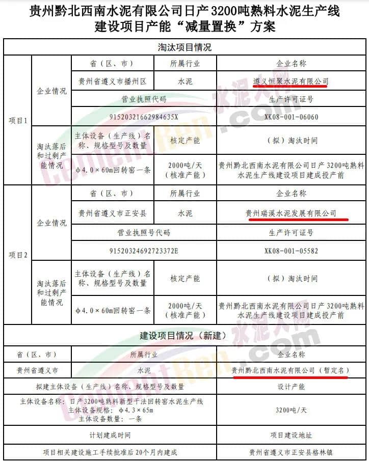 據(jù)水泥人網(wǎng)了解,2018年12月下旬,貴州省工業(yè)和信息化廳發(fā)布關(guān)于關(guān)于貴州黔北西南水泥有限公司日產(chǎn)3200噸 熟料水泥生產(chǎn)線建設(shè)項目產(chǎn)能“減量置換”方案的公示提到,貴州黔北西南水泥有限公司通過減量置換方式新建一條3200t/d熟料水泥生產(chǎn)線。