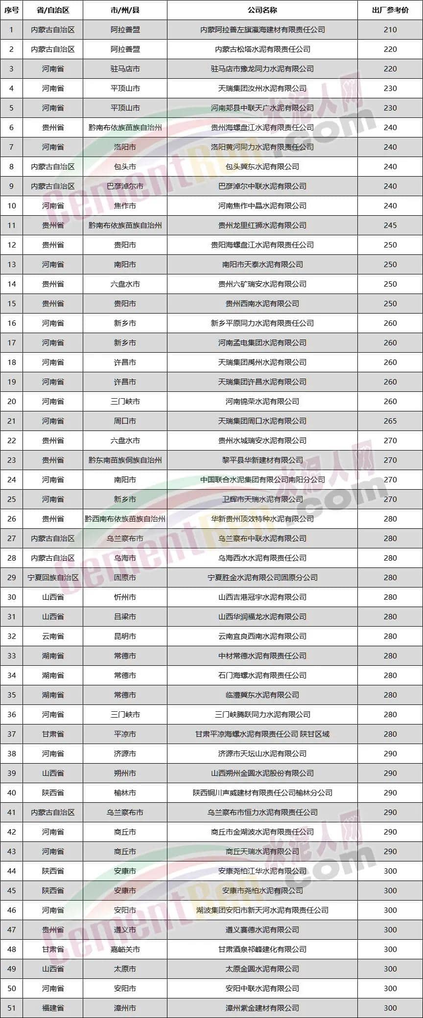 備注:以上數(shù)據(jù)來源于水泥人網(wǎng)信息中心,如有差池,請以實際數(shù)據(jù)為準(zhǔn)!