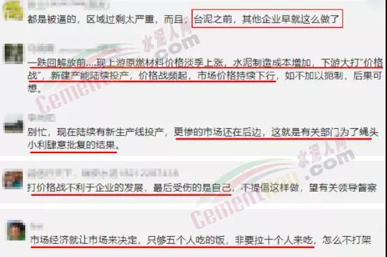 對于臺泥大幅度降價情況,市場中存在各種聲音,有人稱臺泥執(zhí)行的是“市場競爭”,其他企業(yè)則是“價格戰(zhàn)”;也是有人說臺泥是低于成本價在“血拼”;這是白菜價,貴州產(chǎn)能嚴重過剩,疊加多重因素,本輪競爭空前激烈,期待后續(xù)市場調(diào)整;都是被逼的,區(qū)域過剩嚴重,而且在臺泥之前,其他企業(yè)早就這么做了。