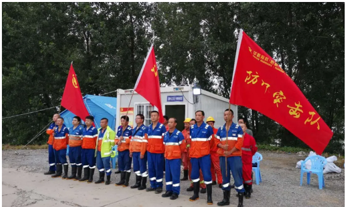 華新陽新骨料公司黨員防汛救災(zāi)突擊隊(duì)?wèi)?zhàn)斗在防汛搶險(xiǎn)一線