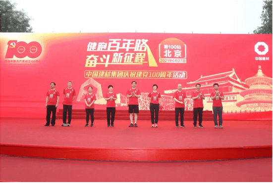 6月27日,中國建材集團(tuán)“健跑百年路奮斗新征程”第100站活動在北京圓滿收官。中國建材集團(tuán)黨委書記、董事長周育先,黨委副書記孫力實,黨委常委、總會計師詹艷景,黨委常委、副總經(jīng)理常張利,中國工程院院士、集團(tuán)總工程師彭壽,中國建材總院黨委書記、董事長王益民,中國建材雜志社社長胡浩,中國建材報副總編輯李予陽及中央企業(yè)黨史學(xué)習(xí)教育第六指導(dǎo)組領(lǐng)導(dǎo)出席活動。來自中國建材股份、中國建材總院、凱盛科技、資產(chǎn)公司、地勘中心、中材節(jié)能、智慧工業(yè)等18家企業(yè)的400余名黨員職工參加了活動。