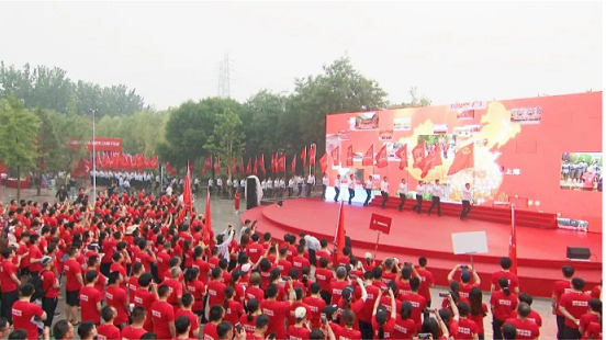 活動現(xiàn)場舉行了“健跑百年路奮斗新征程”100站旗手會師儀式。100位旗手高擎著鮮艷的站旗,步伐鏗鏘、氣勢昂揚,他們代表著從黨史中不斷汲取智慧和力量的中國建材人,更加明理、增信、崇德、力行,滿懷信心啟航新征程!