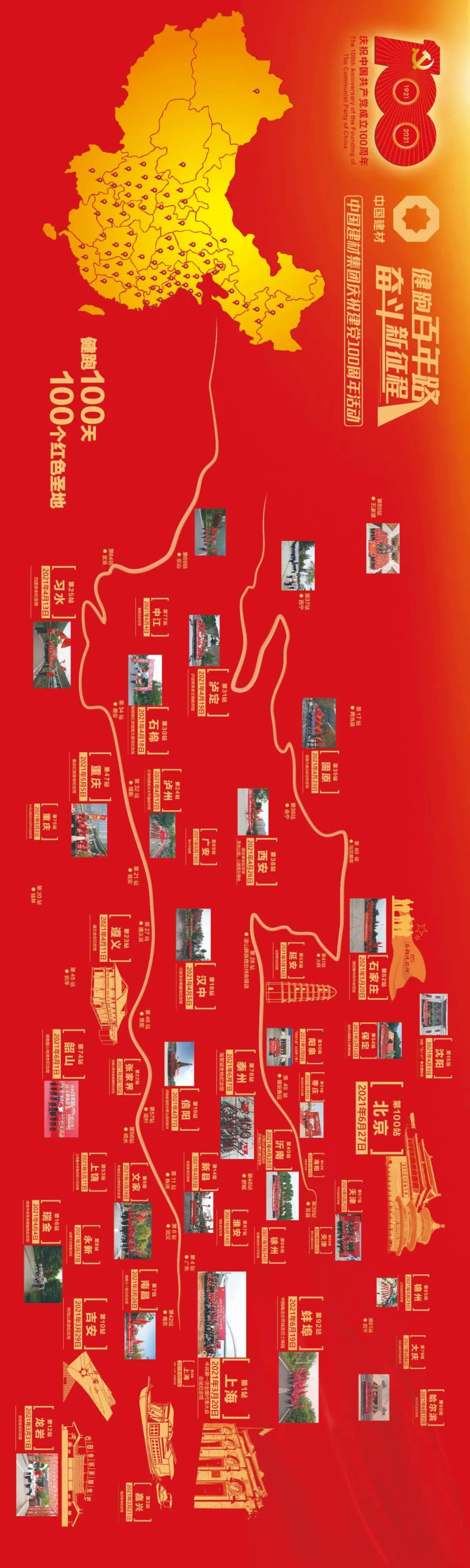 本次健跑活動路線全程5公里,按照中國地圖的形狀進(jìn)行設(shè)計規(guī)劃,寓意著中國建材人深沉的愛黨愛國情懷。賽道沿途還制作了黨史事件標(biāo)識牌,記錄和濃縮了中國共產(chǎn)黨百年奮進(jìn)的光輝歷程,激勵引導(dǎo)大家不忘初心、牢記使命,啟航新征程。