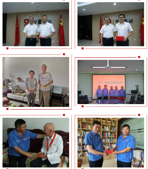 近日,寧夏建材各級(jí)黨組織通過(guò)組織座談會(huì)、下基層、進(jìn)家門(mén)、送關(guān)懷等形式對(duì)30名獲得縣級(jí)以上優(yōu)秀黨員、優(yōu)秀黨務(wù)工作者,12名困難黨員和3名離退休老干部進(jìn)行了慰問(wèn),并向他們轉(zhuǎn)達(dá)了黨組織對(duì)他們的關(guān)懷,褒揚(yáng)他們?yōu)楣镜慕?jīng)營(yíng)發(fā)展作出的貢獻(xiàn),了解他們的思想動(dòng)態(tài)和具體訴求,積極幫助他們解決實(shí)際困難。
