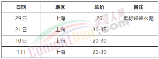 華東地區(qū)水泥價(jià)格最高下跌115元/噸