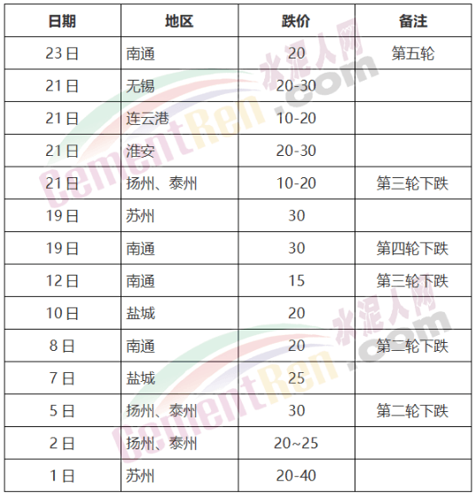 四川省甘孜州、雅安、南充、瀘州、達(dá)州、廣安在6月內(nèi)多區(qū)域水泥價(jià)格下調(diào)20-30元/噸。