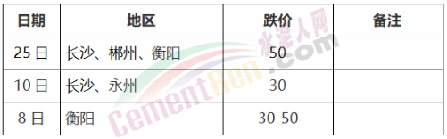 6月份長沙、郴州、衡陽、永州等多地水泥價(jià)格下調(diào)30-50元/噸。其中長沙地區(qū)部分品牌水泥價(jià)格下跌50元/噸,市場累計(jì)下跌80-90元/噸?,F(xiàn)主流品牌PO42.5散裝市場成交價(jià)400-430元/噸。