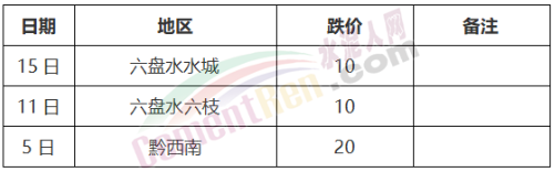 貴州省6月中旬左右,六盤水水城和六枝地區(qū)水泥價(jià)格小幅回落下調(diào)10元/噸,22日前后,貴州區(qū)域三家臺泥水泥直降100-150元/噸,降價(jià)后PO42.5散裝水泥報(bào)價(jià)160元/噸。