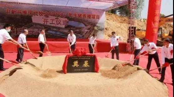 2020年8月17日上午,湖北中新開維現(xiàn)代牧業(yè)有限公司年產(chǎn)60萬頭生豬養(yǎng)殖項目開工典禮在湖北世紀(jì)新峰雷山水泥廠區(qū)內(nèi)隆重舉行。項目計劃投資20億元,建設(shè)單體26層高的生產(chǎn)大樓及附屬建筑,總建筑面積45萬平方米,建成后年出欄生豬量可達(dá)60萬頭。