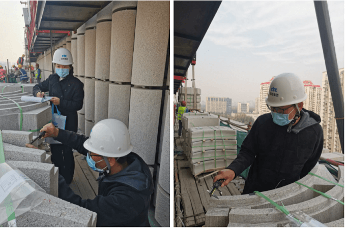 在近500個日日夜夜里,石材中心干部職工團結(jié)一心、埋頭苦干、攻堅克難,跨越福建省、貴州省、四川省、山東省、湖北省、天津市6個省市自治區(qū),進駐礦山、進駐石材加工廠、進駐施工現(xiàn)場,及時獲取一手資料,組織線上線下會議10余次,協(xié)調(diào)30多個相關(guān)單位進行信息溝通,完成石材質(zhì)控總面積60000平方米,出具抽檢報告58批次,監(jiān)造記錄166批次,質(zhì)控工作貫穿石材應(yīng)用的全過程,最終迎來了項目的圓滿竣工。國檢集團不辱使命,用專業(yè)的技術(shù)服務(wù)贏得了各方的高度認(rèn)可。
