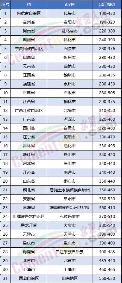從全國水泥價(jià)格來看,目前全國大部地區(qū)水泥價(jià)格保持在300~400元/噸之間,相對往年來說基本持平。