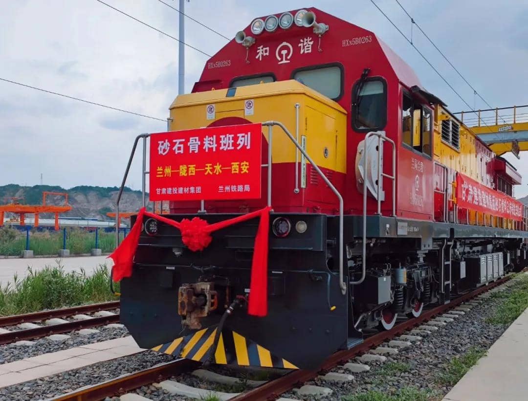 此次砂石骨料“公轉(zhuǎn)鐵”集裝箱班列是在甘肅省國資委、甘肅建投的大力支持下,由甘肅建投建材集團(tuán)與蘭州鐵路局積極協(xié)商,達(dá)成砂石料運(yùn)輸公轉(zhuǎn)鐵合作協(xié)議,依托鐵路運(yùn)輸方式打造的一條砂石骨料綠色運(yùn)輸新通道。