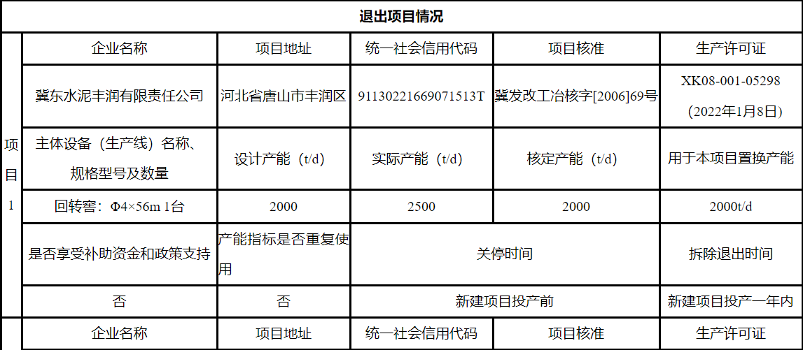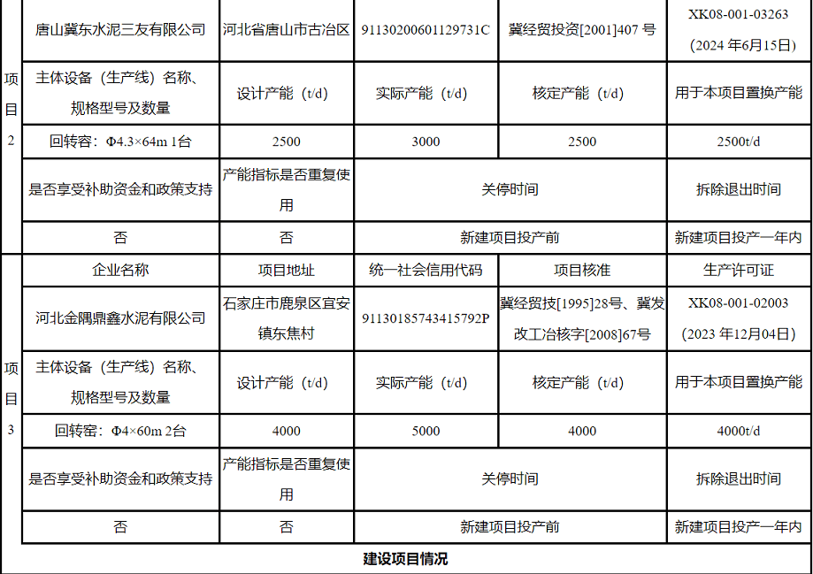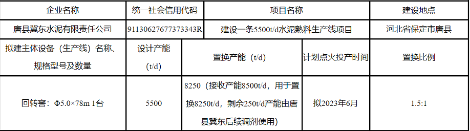唐縣冀東水泥有限責(zé)任公司產(chǎn)能置換方案公告!