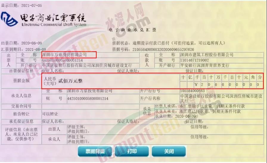 2021年6月9日,深圳市建筑工程股份有限公司200萬元商業(yè)承兌匯票逾期未收到款項。