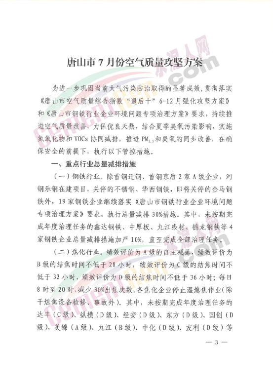 日前,唐山市大氣污染防治工作領(lǐng)導(dǎo)小組辦公室發(fā)布《唐山市7月份空氣質(zhì)量攻堅(jiān)方案》要求水泥行業(yè)按要求減排停產(chǎn)。