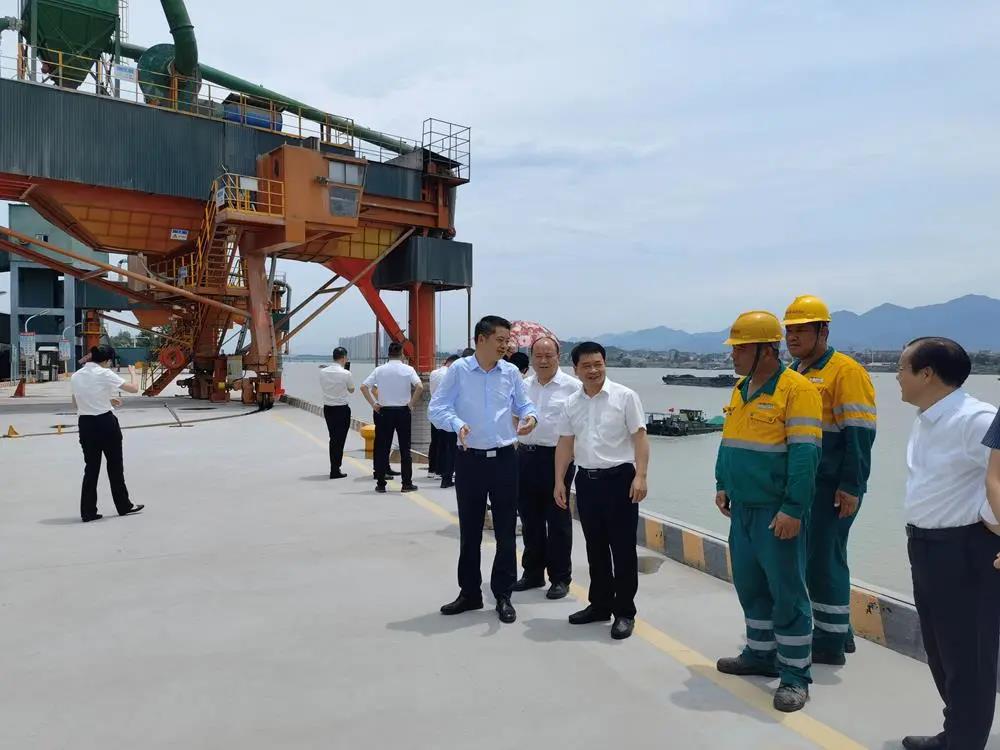 上午廖俊一行實(shí)地考察杭州市桐廬縣紅獅水泥廠區(qū)和自運(yùn)碼頭,了解企業(yè)國(guó)際先進(jìn)新型干法生產(chǎn)水泥工藝和水泥運(yùn)輸流程。