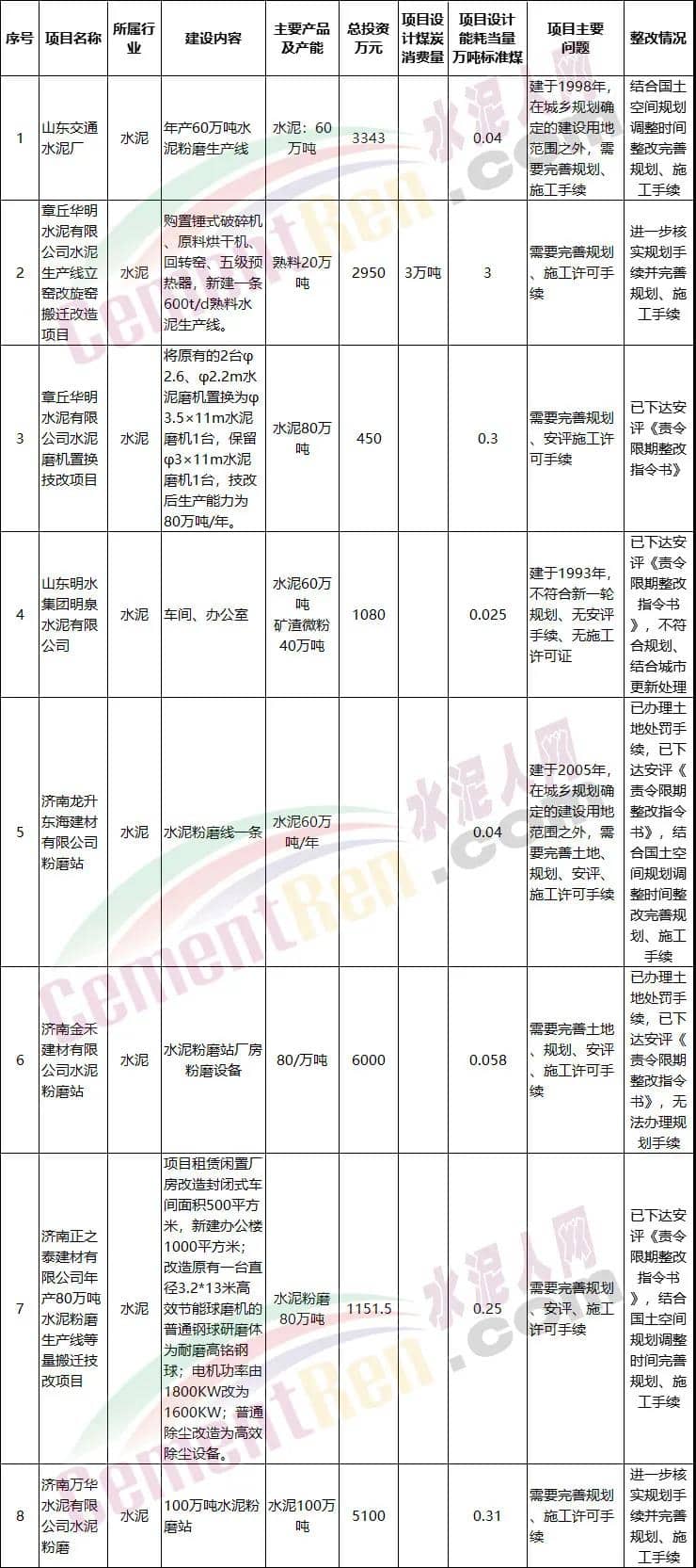 應文件要求,山東濟南章丘區(qū)近日發(fā)布了“兩高”項目清單,其中包括山東交通水泥廠、章丘華明水泥有限公司、山東明水集團明泉水泥有限公司、濟南龍升東海建材有限公司、濟南金禾建材有限公司水泥、濟南正之泰建材有限公司、濟南萬華水泥有限公司等7家水泥企業(yè)8個建成項目。詳情如下: