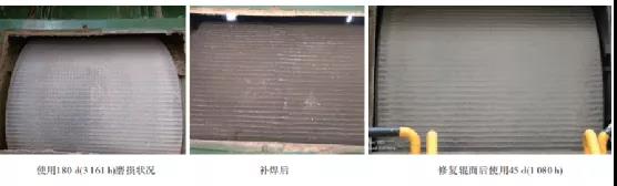 輥面鋪焊周期由原來(lái)的3個(gè)月(生產(chǎn)86萬(wàn)噸生料)一次,提升到現(xiàn)在的6個(gè)月(生產(chǎn)142萬(wàn)噸生料)一次,原來(lái)鋪焊需要車削露出母材,現(xiàn)在可直接鋪焊,鋪焊時(shí)間從原來(lái)的12天降低到現(xiàn)在的4天,單次維修費(fèi)用由原來(lái)的20萬(wàn)元降低到現(xiàn)在的6萬(wàn)元。