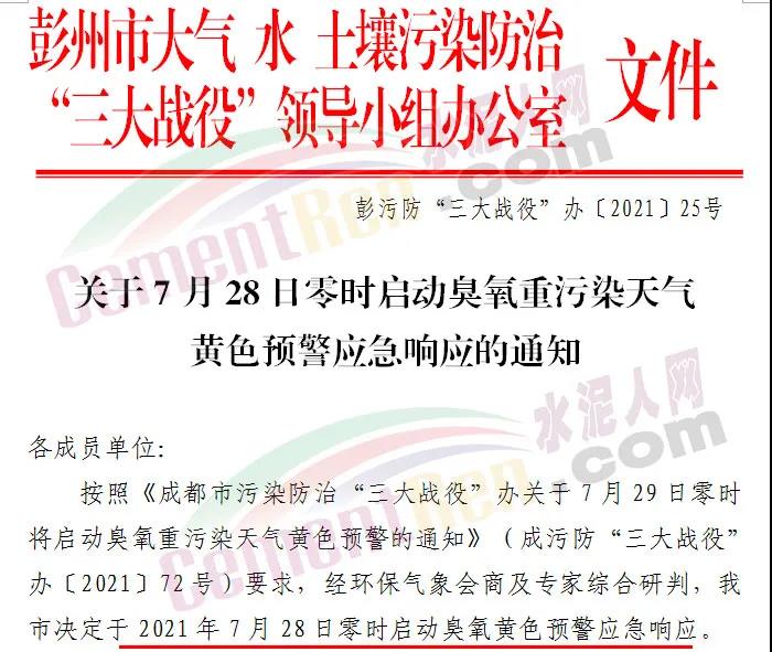 據(jù)水泥人網(wǎng)了解,成都市決定于7月29日零時啟動臭氧重污染天氣黃色預(yù)警。四川多地發(fā)布高溫橙色預(yù)警信號,成都、瀘州、達(dá)州、南充、遂寧、自貢都官宣進入“晴熱少雨”高溫模式。