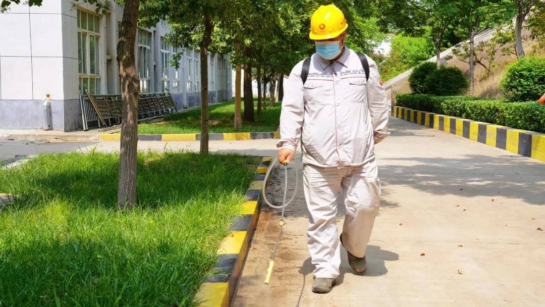 濟源中聯對低洼處綠化帶和下水道口地進行消毒