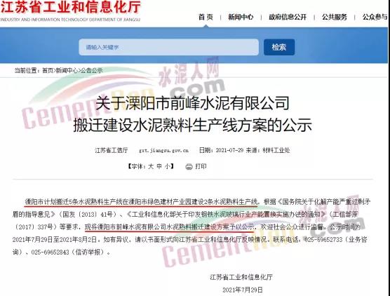 7月29日,江蘇省工信廳發(fā)布《關(guān)于溧陽(yáng)市前峰水泥有限公司搬遷建設(shè)水泥熟料生產(chǎn)線方案的公示》稱,溧陽(yáng)市計(jì)劃搬遷5條水泥熟料生產(chǎn)線在溧陽(yáng)市綠色建材產(chǎn)業(yè)園建設(shè)2條水泥熟料生產(chǎn)線,根據(jù)相關(guān)文件要求,計(jì)劃關(guān)停江蘇金峰水泥、江蘇溧陽(yáng)南方水泥、江蘇溧陽(yáng)東方水泥合計(jì)585萬(wàn)噸產(chǎn)能用于建設(shè)溧陽(yáng)市前鋒水泥有限公司540萬(wàn)噸水泥熟料生產(chǎn)線。