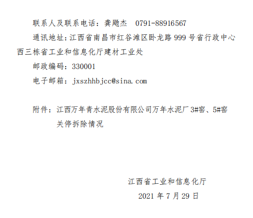 同期,江西省工業(yè)和信息化廳發(fā)布《關(guān)于江西萬年青水泥股份有限公司萬年水泥廠用于8#窯產(chǎn)能置換的3#、5#窯關(guān)停和拆除的公示》稱,按照《江西省工業(yè)和信息化廳關(guān)于江西萬年青水泥股份有限公司萬年水泥廠2×5100t/d水泥熟料生產(chǎn)線產(chǎn)能置換方案公告》(贛工信建材〔2017〕第10號),省建材集團所屬江西萬年青水泥股份有限公司萬年水泥廠用3#、5#窯置換的8#窯已建成投產(chǎn),用于產(chǎn)能置換的3#、5#窯已按規(guī)定關(guān)停和拆除。省工業(yè)和信息化廳組織專家對用于8#窯產(chǎn)能置換的3#、5#窯關(guān)停和拆除情況進行了現(xiàn)場核驗。