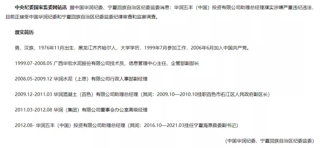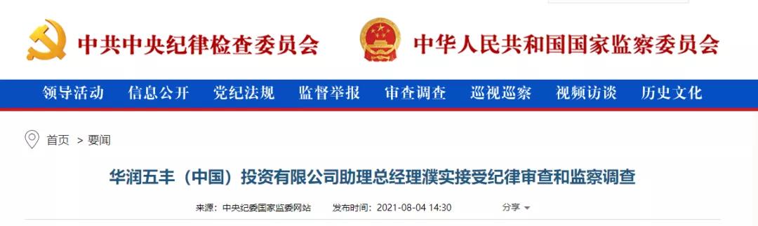 中央紀(jì)委國家監(jiān)委網(wǎng)站訊據(jù)中國華潤紀(jì)委、寧夏回族自治區(qū)紀(jì)委監(jiān)委消息:華潤五豐(中國)投資有限公司助理總經(jīng)理濮實(shí)涉嫌嚴(yán)重違紀(jì)違法,目前正接受中國華潤紀(jì)委和寧夏回族自治區(qū)紀(jì)委監(jiān)委紀(jì)律審查和監(jiān)察調(diào)查。