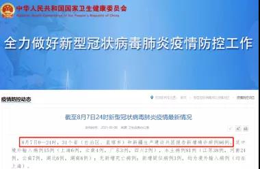 8月7日0時(shí)-24時(shí),河南省新增本土確診病例3例(鄭州市3例),無癥狀感染者轉(zhuǎn)確診病例21例(鄭州市20例、駐馬店市1例);新增本土無癥狀感染者2例(鄭州市2例)。