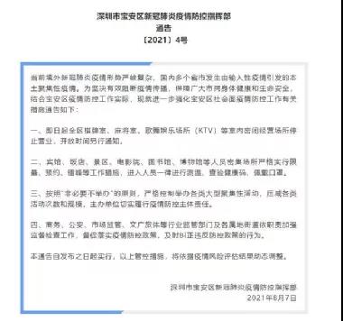 深圳市寶安區(qū):即日起寶安區(qū)KTV、棋牌室等室內(nèi)密閉經(jīng)營(yíng)場(chǎng)所停止?fàn)I業(yè)。