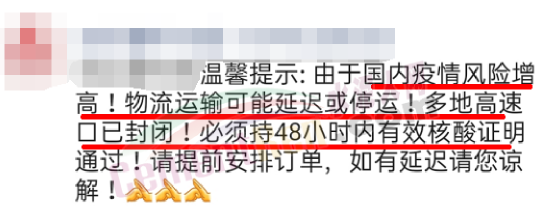 有司機表示“現(xiàn)在已經(jīng)全員檢測!但是各地防疫政策不同,有些區(qū)域即便有行程碼、健康碼仍難通行,因為路已經(jīng)被堵死或挖斷了,有相關證明也沒用。”