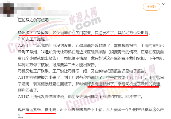 一水泥經(jīng)銷商表示,水、陸運輸都因疫情或多或少的受到影響。水泥運不出去,物料運不進來,水泥銷售受到一定的限制。同時因部分物流司機不愿出車令物流市場車輛減少,運費價格大比例上漲。