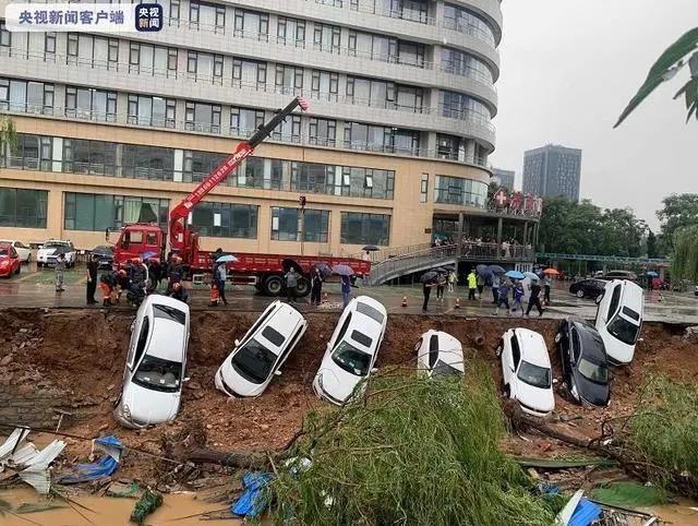 7月12日14時(shí)58分,受強(qiáng)降雨影響,山東省濟(jì)南市高新區(qū)一處靠近泄洪溝的路面突然出現(xiàn)大面積坍塌,停在路邊的十余輛車墜落排洪溝,所幸未造成人員傷亡。