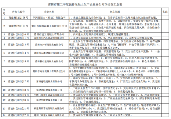 莆田公布預(yù)接拌混凝土專項(xiàng)檢查14家企業(yè)被通報(bào)