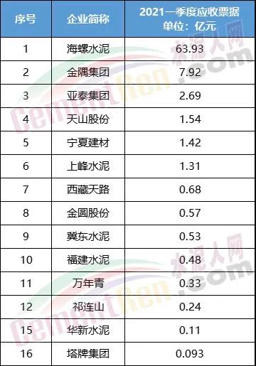 海螺水泥2021年1季度應(yīng)收票據(jù)及應(yīng)收賬款合計(jì)74.13億,其中應(yīng)收票據(jù)達(dá)到63.93億元。