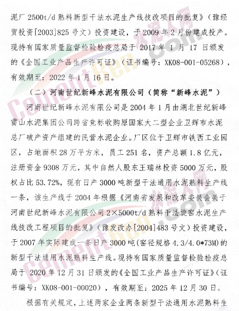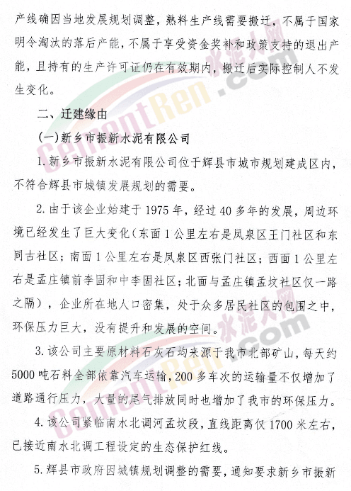 關(guān)于新鄉(xiāng)市振新水泥有限公司一條日產(chǎn)