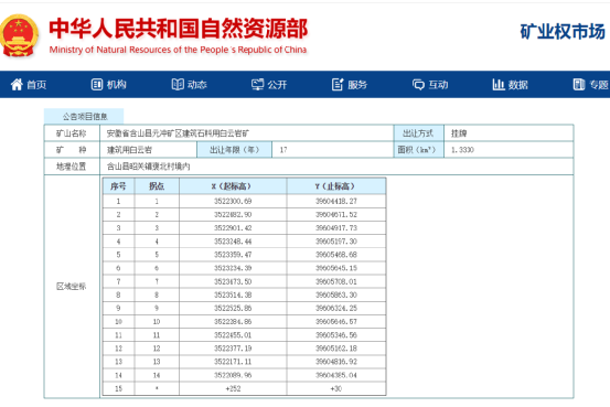 湖北京蘭建材有限公司3116萬元中標(biāo)一礦山9.2年采礦權(quán)