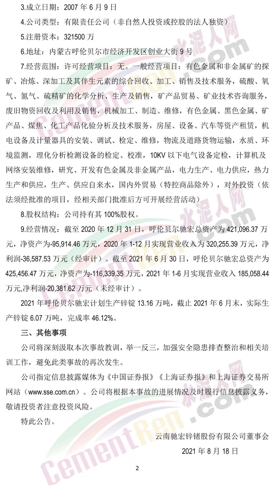 馳宏鋅鍺還表示,目前已按照呼倫貝爾市應(yīng)急管理局的上述要求,立即組織呼倫貝爾馳宏停產(chǎn)并全面開展安全隱患排查、整治和安全教育培訓(xùn)相關(guān)工作;并正積極配合相關(guān)部門的調(diào)查工作,事故的具體原因、相關(guān)責(zé)任、停產(chǎn)時(shí)間和對(duì)公司的影響有待進(jìn)一步核實(shí);同時(shí)本次事故未對(duì)呼倫貝爾馳宏其他生產(chǎn)區(qū)域和周邊環(huán)境造成影響。