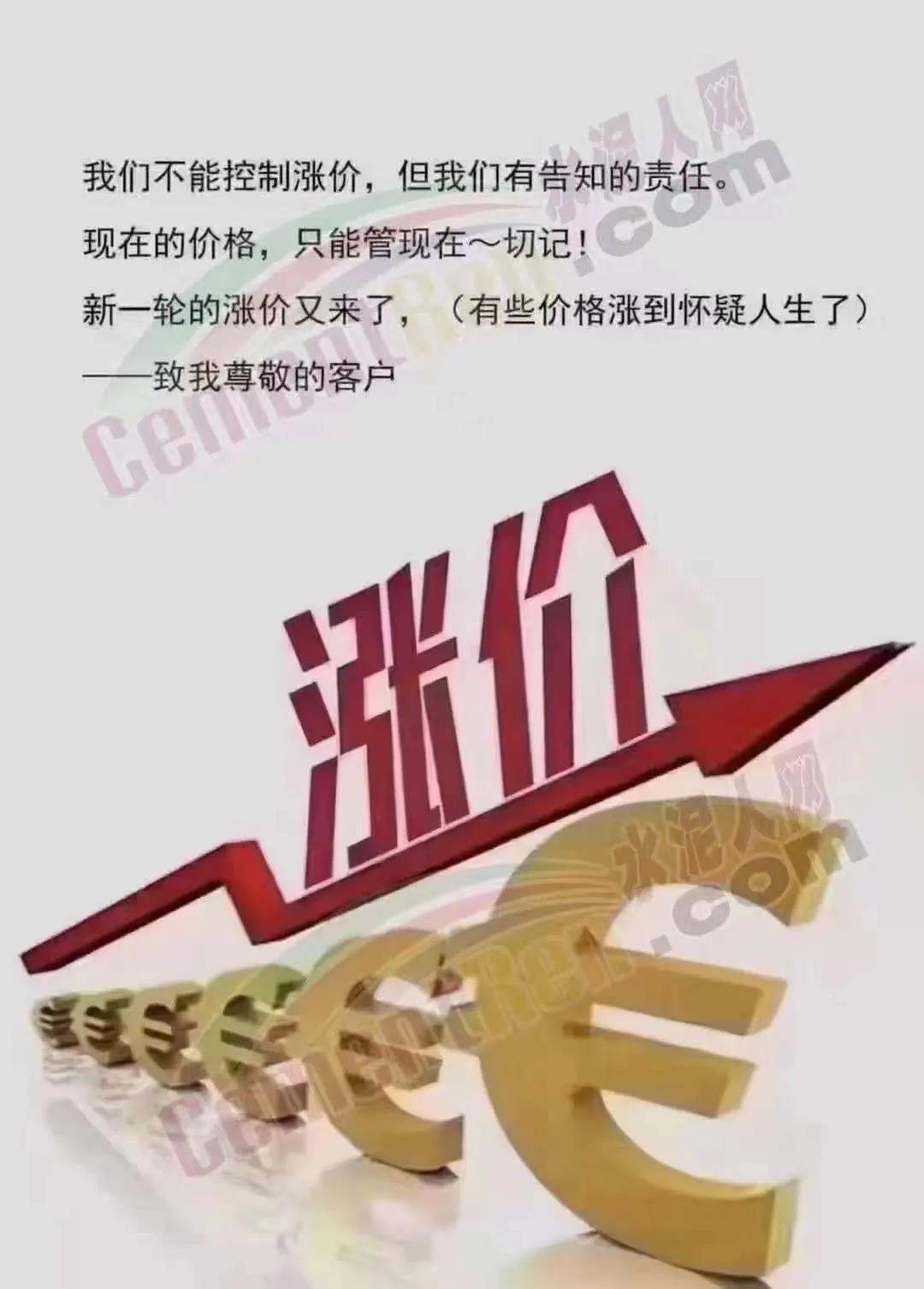 有水泥銷售表示,“我們不能控制漲價(jià),但是我們有告知的責(zé)任?,F(xiàn)在的價(jià)格,只能管現(xiàn)在~新一輪的漲價(jià)又來(lái)了,有些價(jià)格漲到懷疑人生了!”