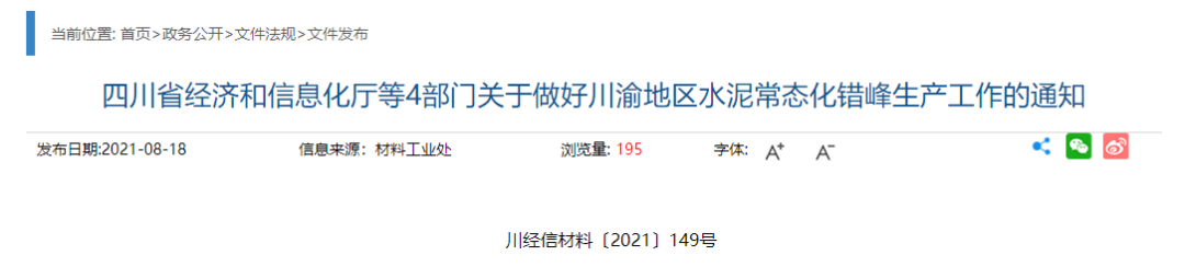 四川省經(jīng)濟(jì)和信息化廳等4部門發(fā)布了《關(guān)于做好川渝地區(qū)水泥常態(tài)化錯(cuò)峰生產(chǎn)工作的通知》同期公布的《川渝地區(qū)水泥行業(yè)錯(cuò)峰生產(chǎn)企業(yè)名單》顯示,川渝地區(qū)共有共120家水泥生產(chǎn)企業(yè)合計(jì)155條生產(chǎn)線參與錯(cuò)峰生產(chǎn)。
