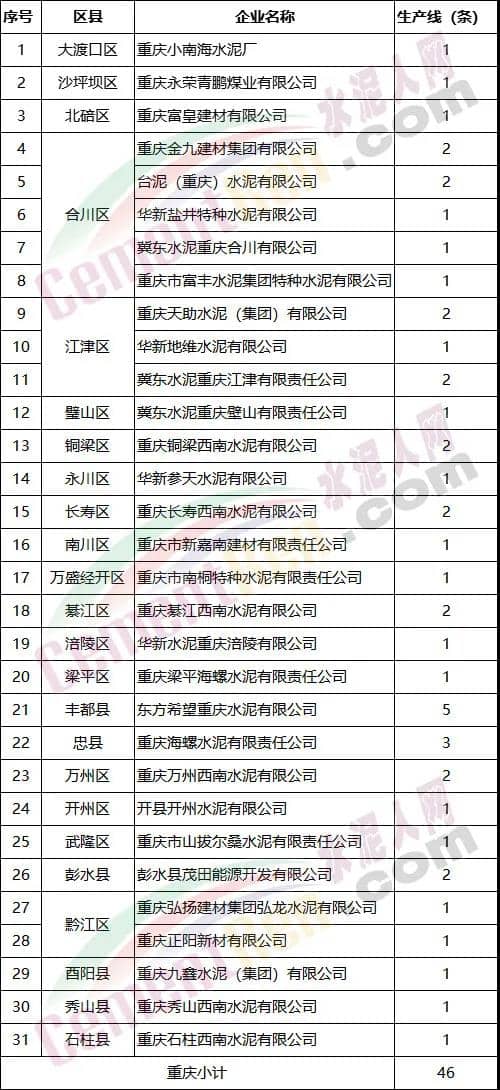 川渝地區(qū)水泥行業(yè)錯(cuò)峰生產(chǎn)企業(yè)名單