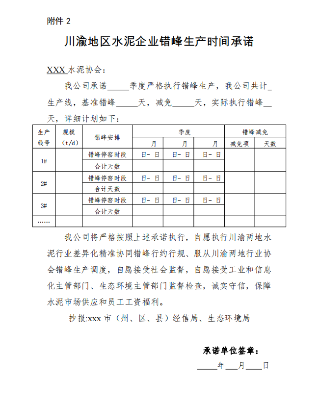 2.川渝地區(qū)水泥企業(yè)錯(cuò)峰生產(chǎn)時(shí)間承諾