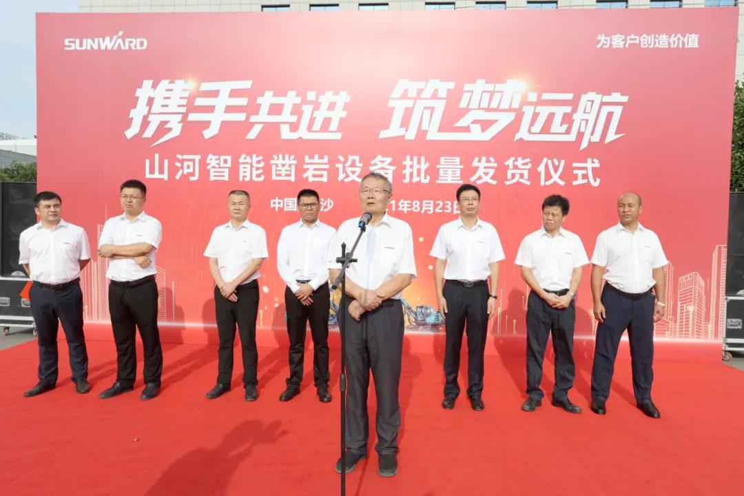 △山河智能董事長(zhǎng)、首席專家何清華在發(fā)貨儀式上講話。