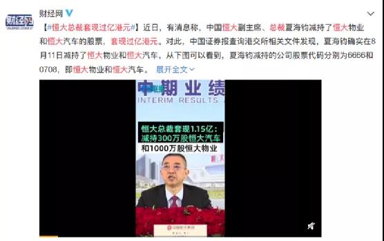 一把手換人 恒大高管集體套現(xiàn)過億港元