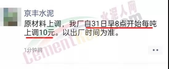 唐山京豐水泥通知,自8月31日起上調(diào)水泥價(jià)格10元/噸。