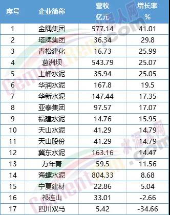 2021年上半年各水泥企業(yè)營收數(shù)據(jù)一覽