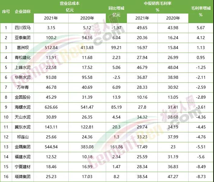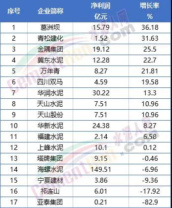 2021年上半年各水泥企業(yè)凈利潤數(shù)據(jù)一覽